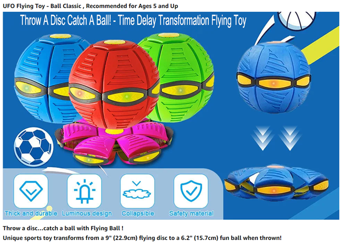 Gowxs UFO Ball,Magic Ball Toy,UFO Portable Flying Saucer Toys Stomp Magic Ball Childrens Toy,Time Delay Transformation Flying Toy,Creative Decompression Ball Toy for Kids Boys and Girls Outdoor Gift(G