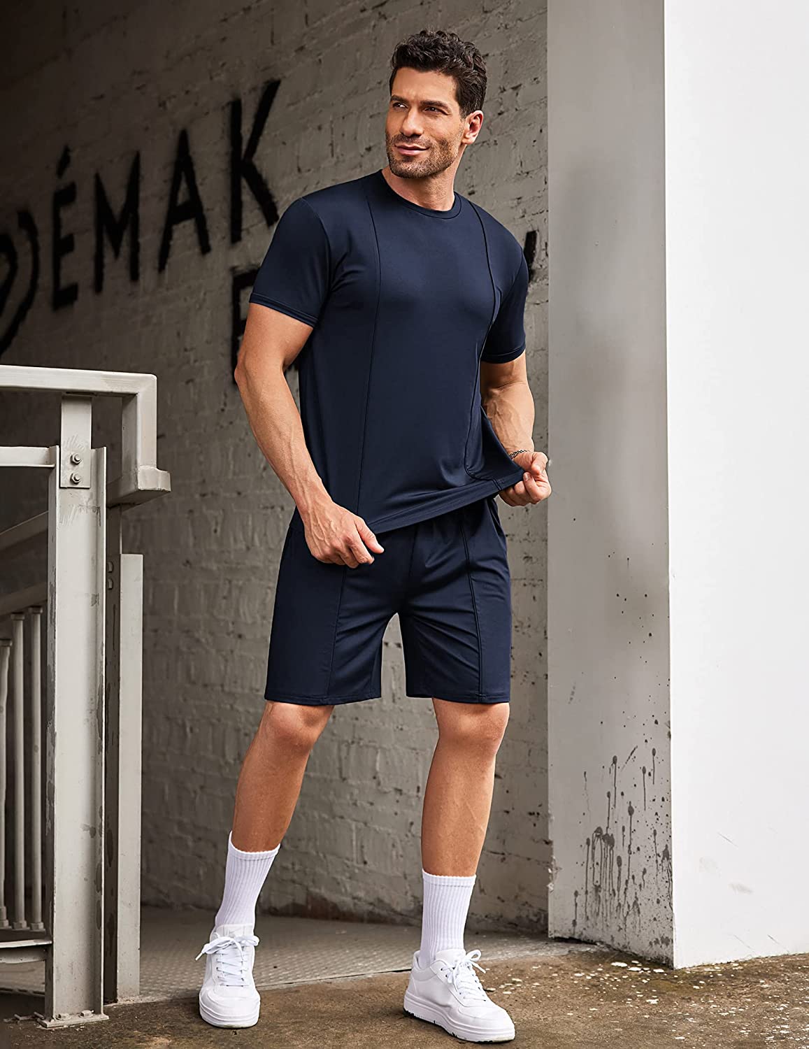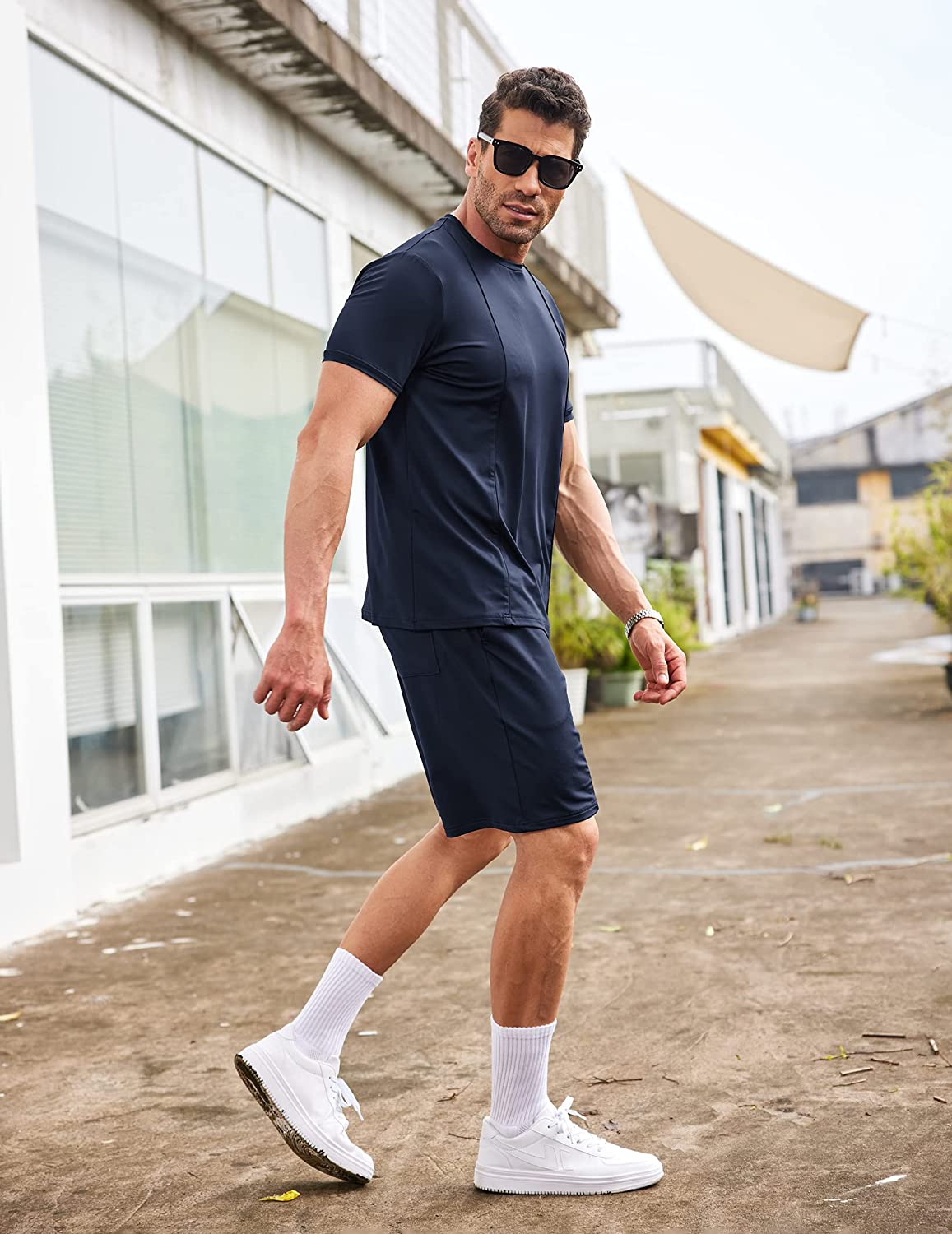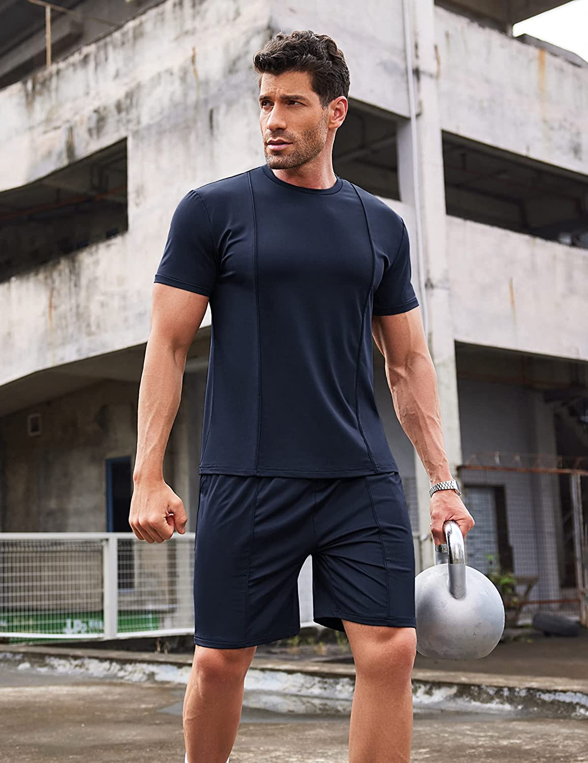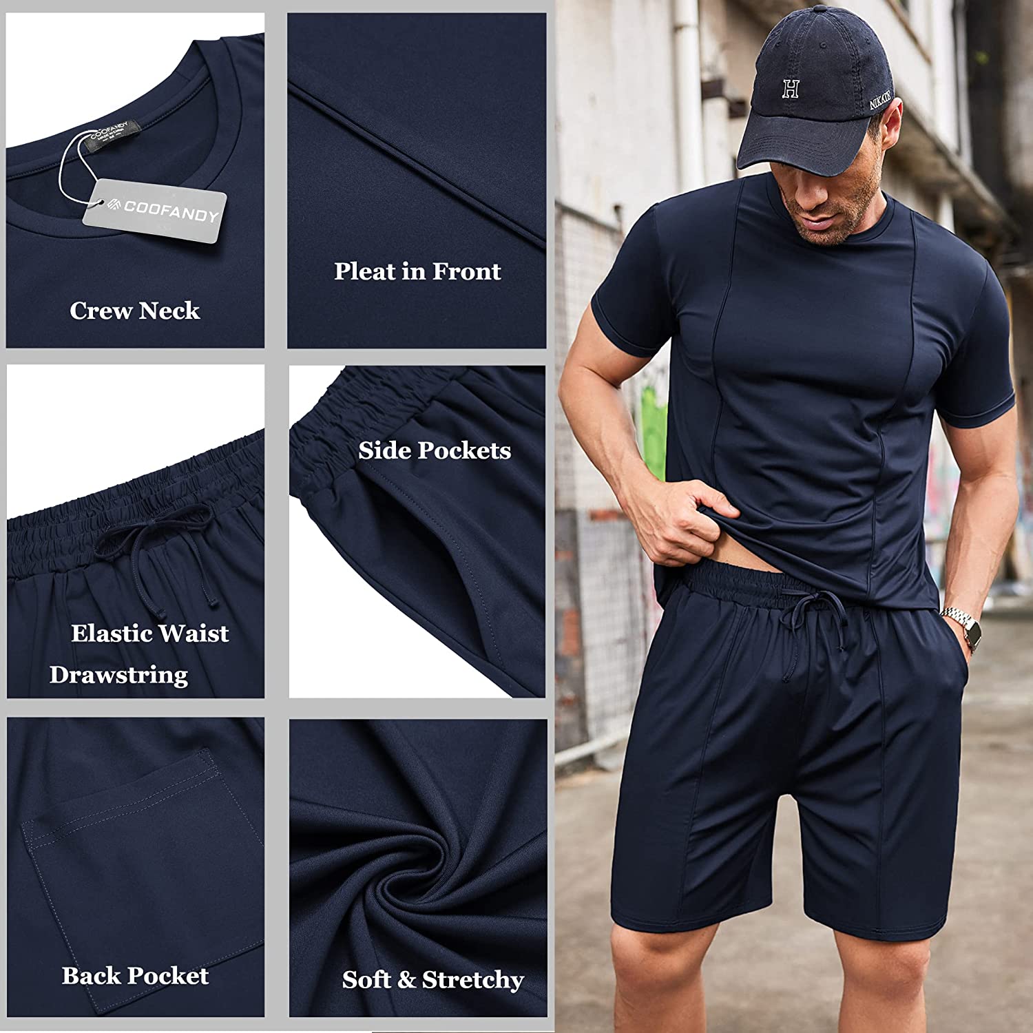 • Stretchy Men's Short and T Shirt Sets: Made of polyester and spandex material, lightweight, breathable, soft and comfortable to wear in all days.