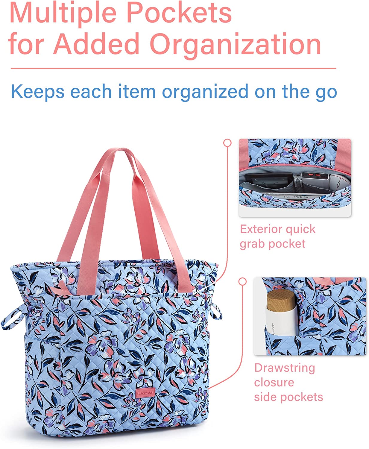 • Quilted Fabrication: This tote bag for women features a slouchy silhouette and quilted fabrication. It's lightweight yet durable and comes in a variety of colorful patterns. Versatile and made to carry-it-all, this tote can be toted to and from school, taken on a hike, or thrown on before commuting.