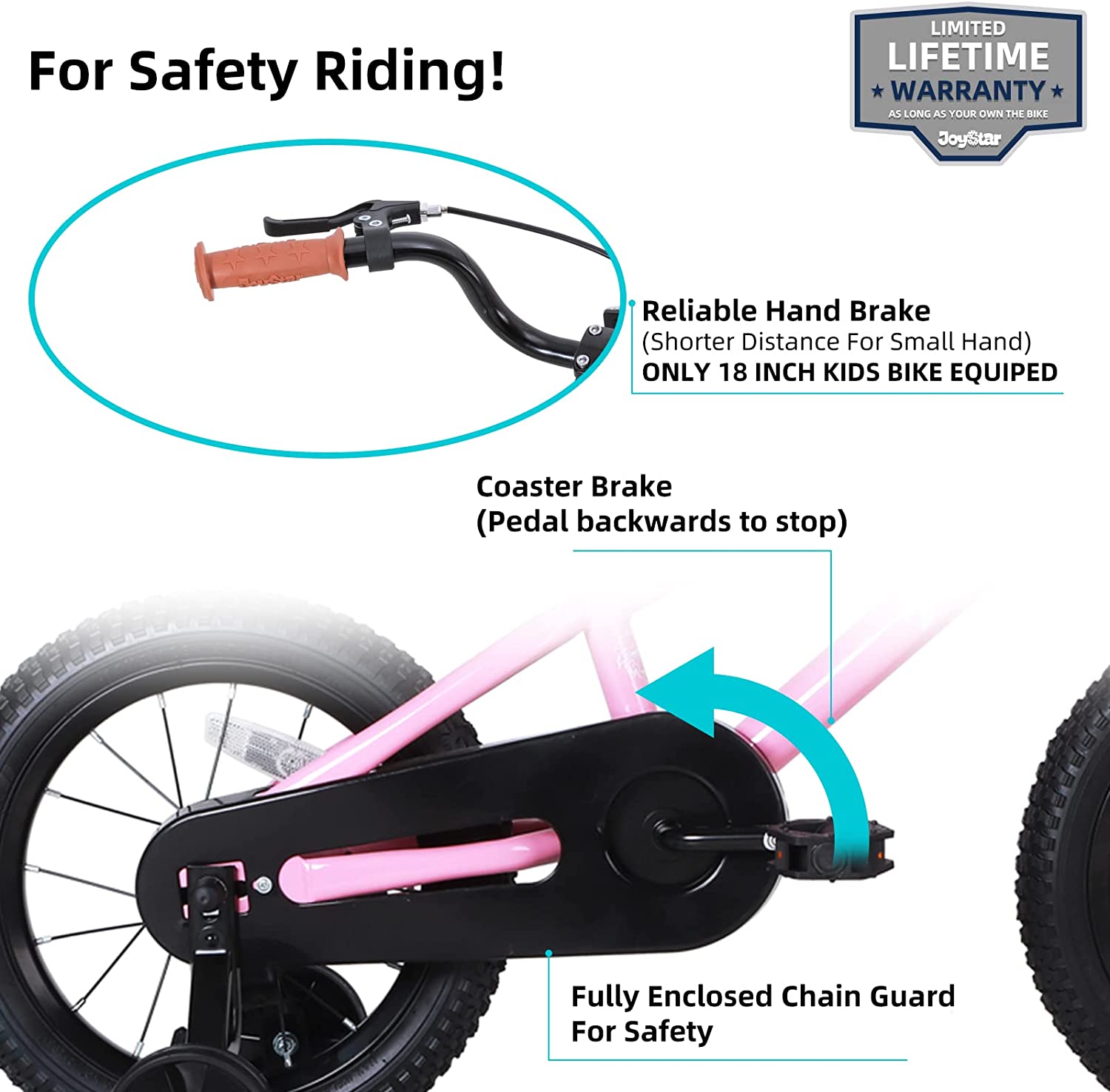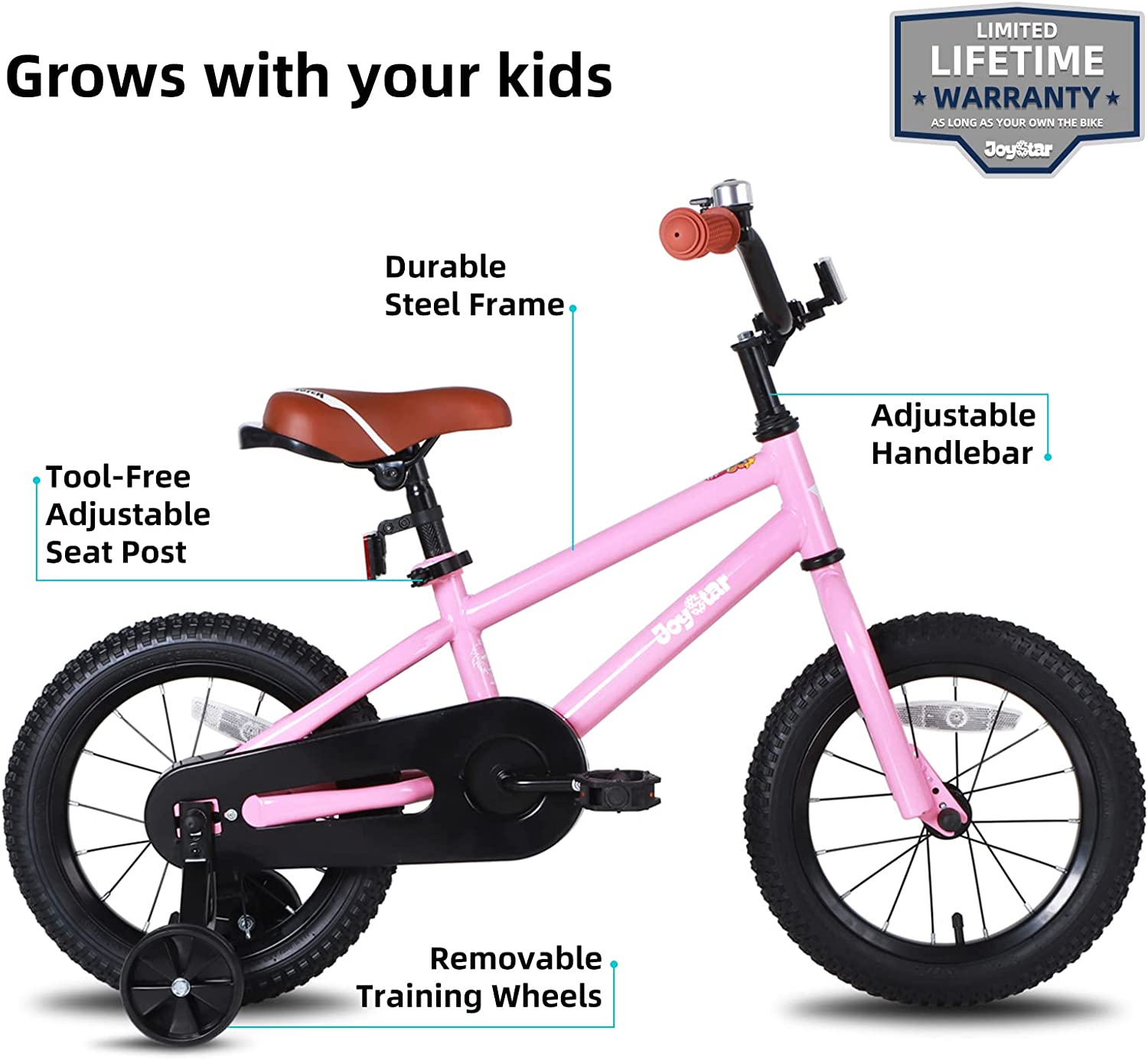 This JOYSTAR Kids Bike is one of the best looking children’s bikes on the market. It’s jam-packed with accessories that will make the rider feel like a professional cyclist. From the bike bell to the decals on the seat, there are a ton of details that make this kid’s bike stand out from the pack. It’s aimed at kids aged three to nine years and has 12-inch 14-inch 16-inch 18-inch wheels that provide many size for choice. Of course, this bike is aimed at kids learning to ride a bike, which is why it comes with training wheels, a fully enclosed chain guard, and a rear coaster brake for safety. This sporty bike also features a bell, a quick release seat post, and training wheels. The adjustable seat is a significant upgrade feature that helps you adjust the seat height as your child grows older. Putting together this bike is as easy as it is to ride! Upon your purchase, the bike is 85% complete and only requires you to install parts such as the front wheel, the saddle, pedals, handlebar, and wheels. With all tools included in the package, fixing the pieces will be done within a considerable amount of time.