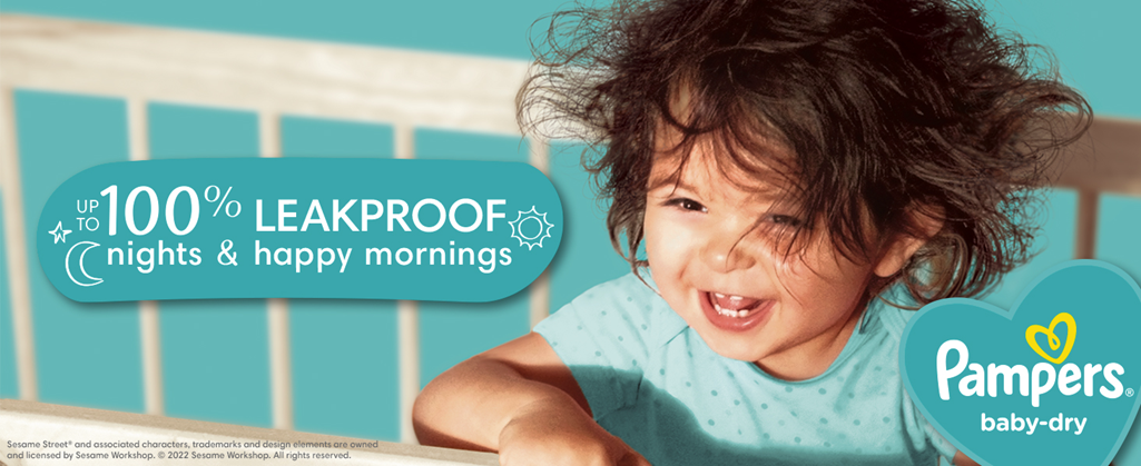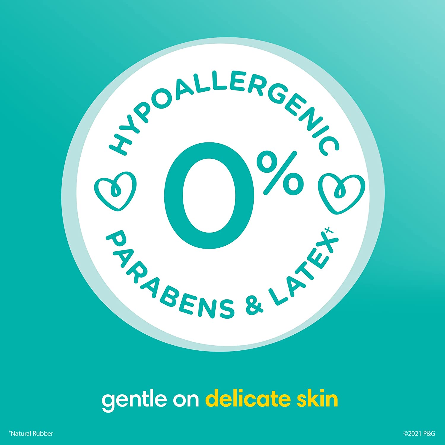 A good night’s sleep starts with a great diaper, and Pampers Baby-Dry diapers give you and your baby up to 100% leakproof nights and happy mornings. Made to protect your baby’s delicate skin, our exclusive LockAway Channels absorb wetness and lock it safely away, while our protective Dri-Weave Liner helps keep skin healthy. Plus, our Baby-Dry Diapers are hypoallergenic and completely free of parabens and latex.* These are just a few of the many reasons Pampers is the #1 pediatrician recommended diaper brand—and your baby's best bet for comfy protection. Pampers also keep messes to a minimum. To help contain leaks and prevent blowouts, our Baby-Dry diapers feature all-around stretchy sides and large tape fasteners for a secure and comfy fit. Plus, they come equipped with our Dual Leak-Guard Barriers that are specially designed to protect around the legs, where leaks tend to happen most. And when your baby is due for a diaper change, our handy Wetness Indicator lets you know. No need for guesswork. Use Baby-Dry diapers with our Pampers Sensitive Wipes to help keep your baby’s skin healthy and prevent irritation. New & improved! Packaging and prints may vary. Ships in 100% recyclable packaging. *Natural Rubber