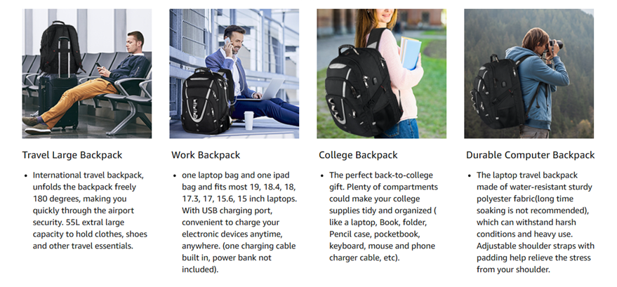 • Fits 19,18.4,18,17.3,17,15.6,15 inch laptops. Also can be used as work backpack, college backpack, gaming laptop backpack, it is an ideal gift choice.