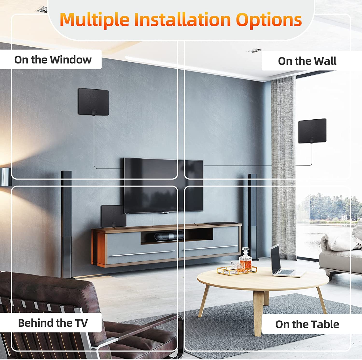 - 【16ft HD Cable and Easy to Mount】 : 16ft coaxial cable can meet your ideas that where and how to set our tv antenna for smart tv, and high quality cable can eliminate other physical factors, making sure you can get constant signal reception.Promise you can install it within 3 minutes.