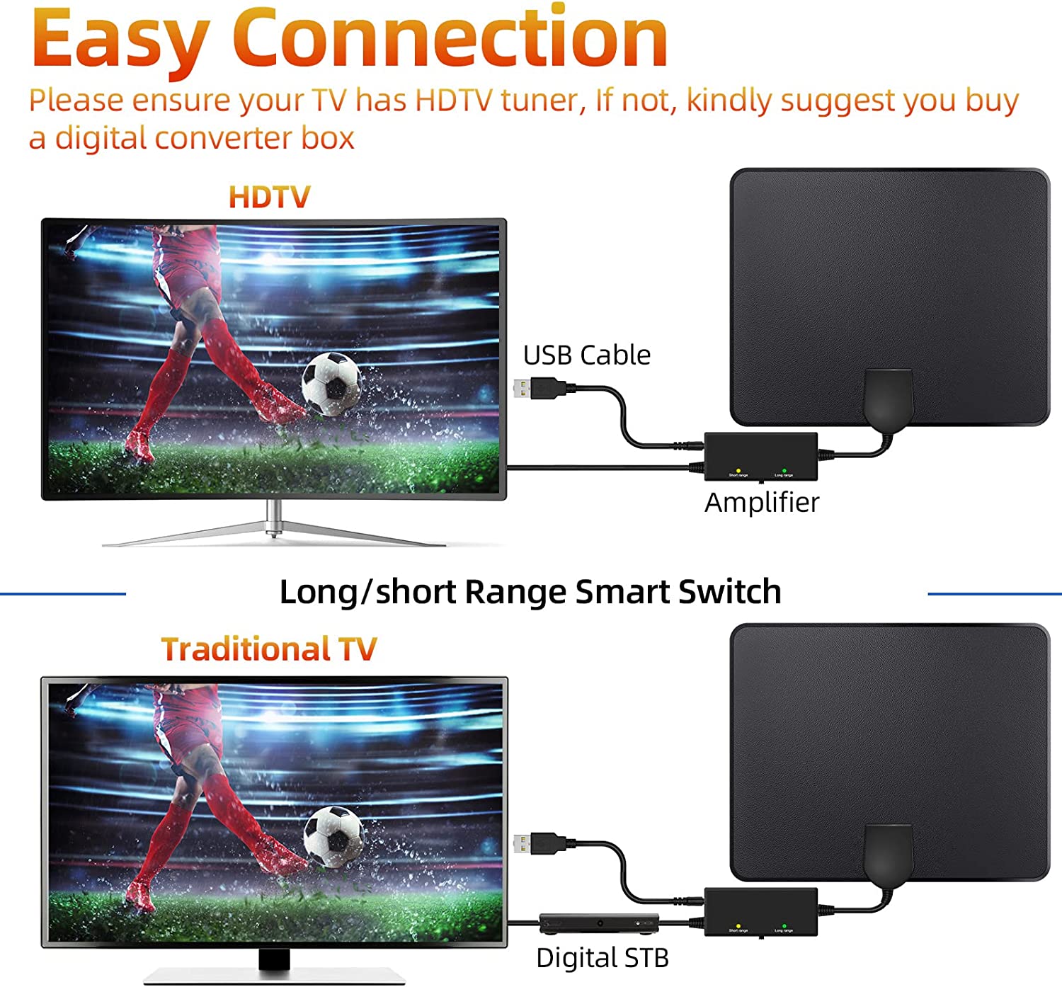 - 【Clear Pictures and Sounds Quality】 : Our antenna tv digital hd indoor outdoor added new technology of cellular and FM signals, which makes you can pick up CRYSTAL PICTURES and receive STABLE SIGNALS in your bedroom, living room, game room, garden and RV etc, just enjoy the TV entertainment with your family!