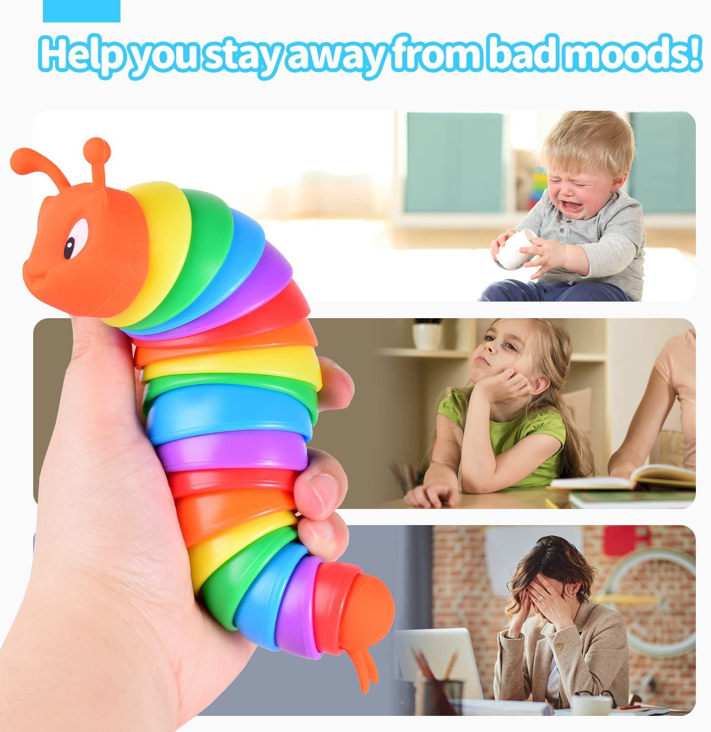 Fidget Slug Toy, Autism Sensory Toys for Autistic Children 3-12 Years Old Kids Toddler, 3D Printed Rainbow Cute Worm Fidgit with Anxiety Relief Therapy, Finger Bug Gift for Girls Boys Birthday