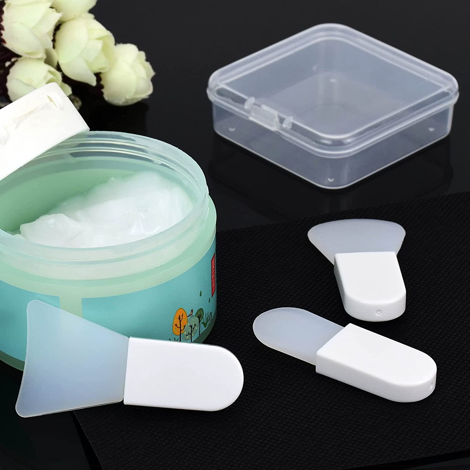 These are the perfect scoopers to pick up the cream and smear directly onto your face body or fingers to apply.