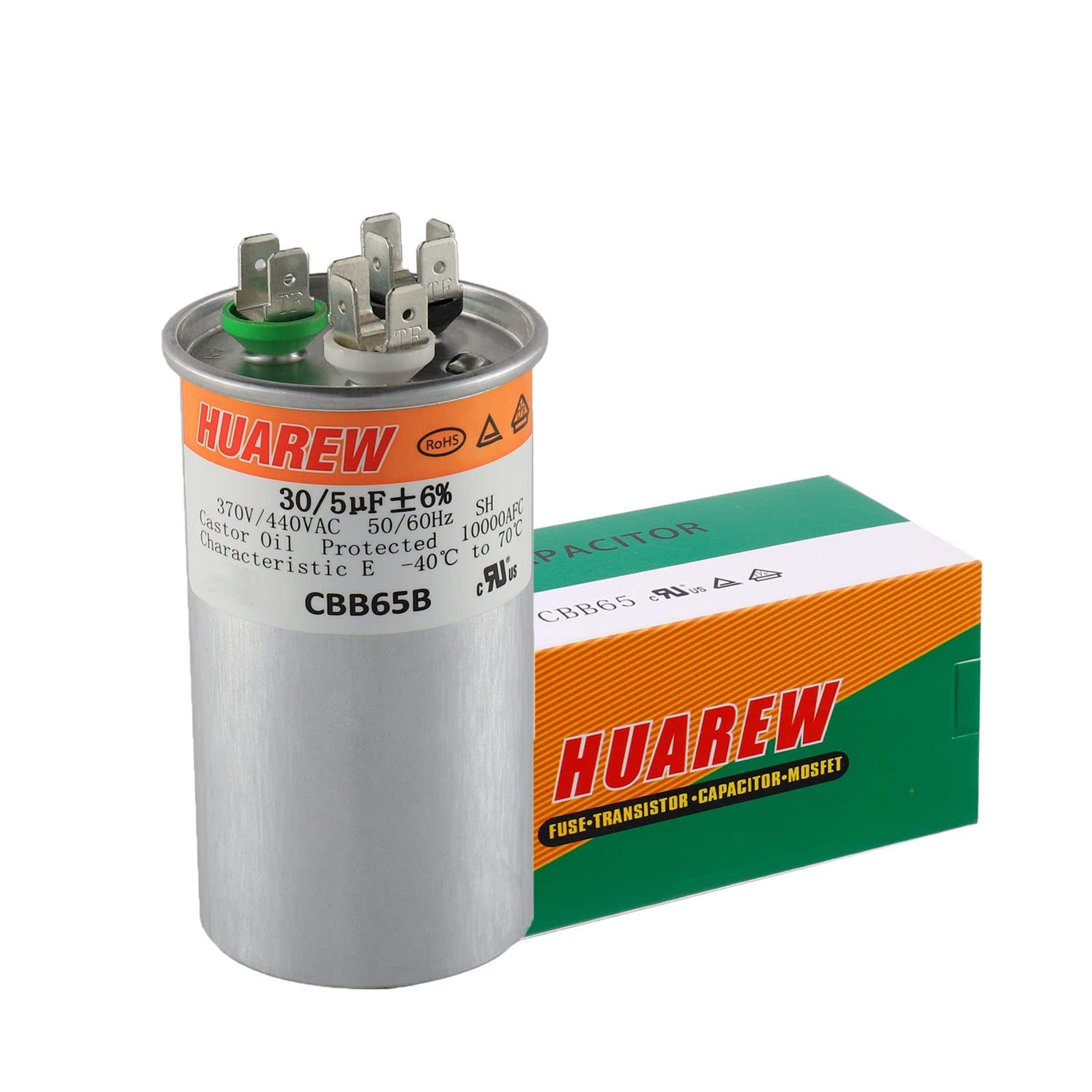 HUAREW 30+5 uF ±6% 30/5 MFD 370/440 VAC CBB65 Dual Run Start Round Capacitor for Condenser Straight Cool or Heat Pump Air Conditioner or AC Motor and Fan Starting