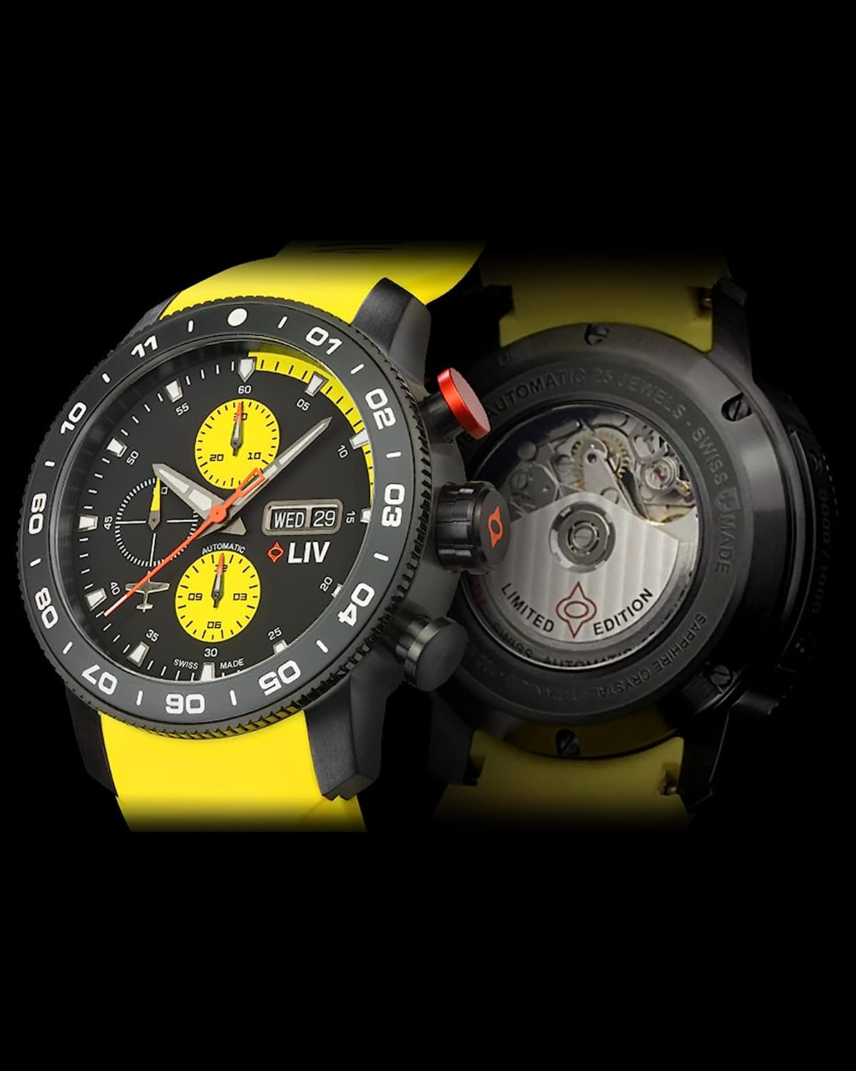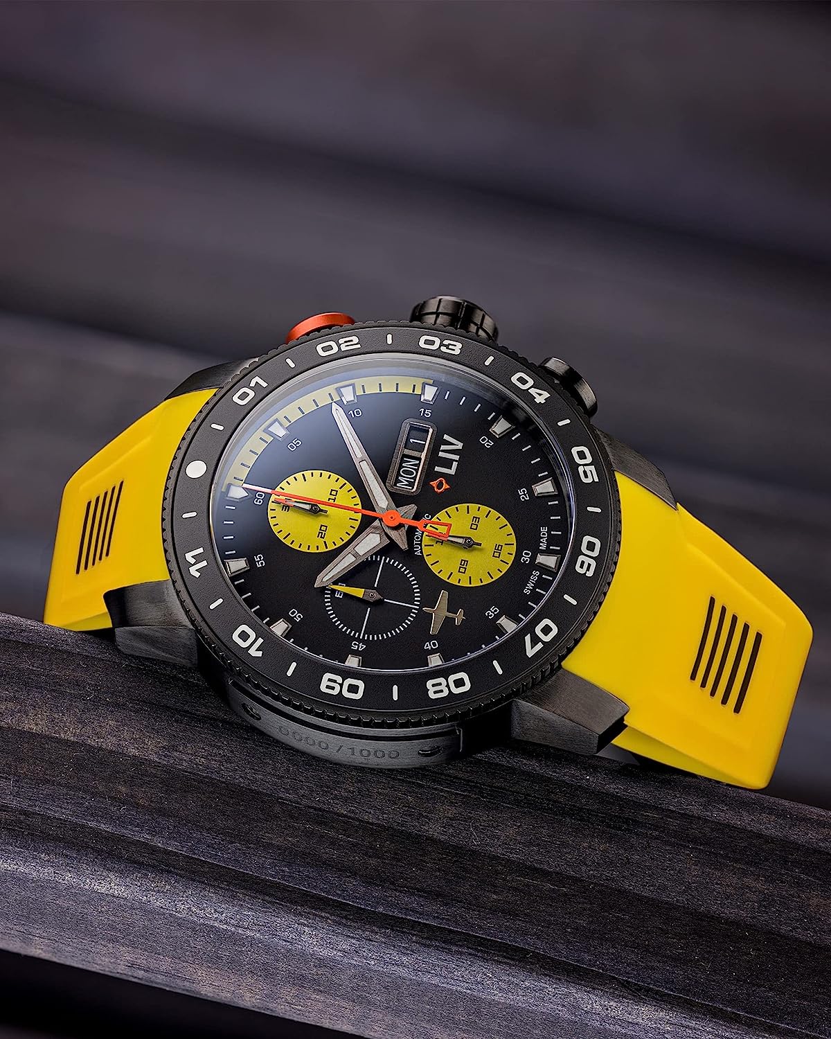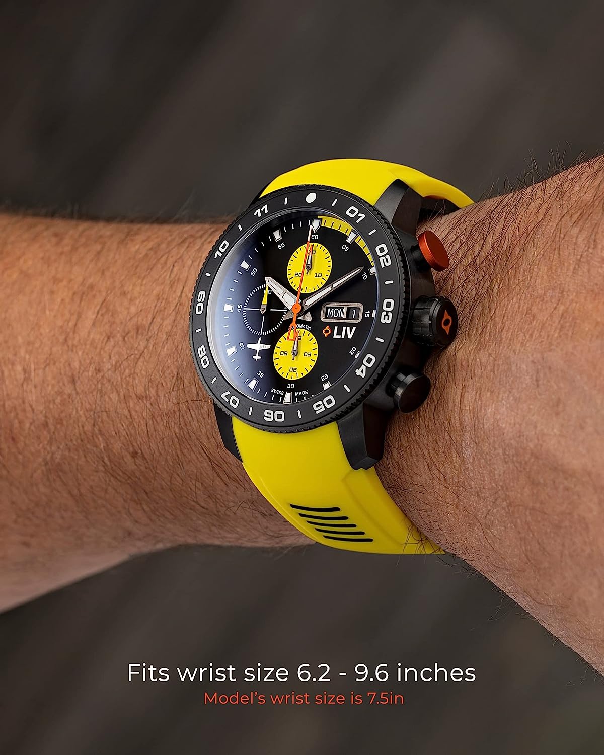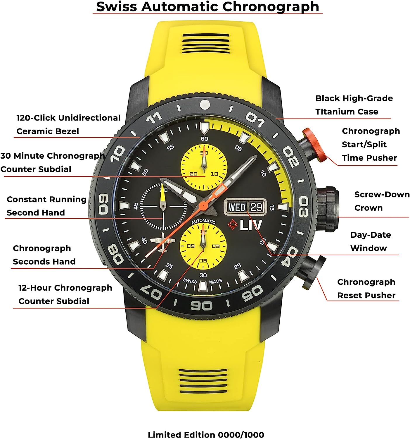 WATCH MOVEMENT: The LIV P-51 is powered by a super-accurate 25 Jewel, ETA 7750 Swiss mechanical automatic movement with a 42-hour power reserve and 12-hour chronograph. It has been one of the most promising movements in Switzerland in the past 100 years.