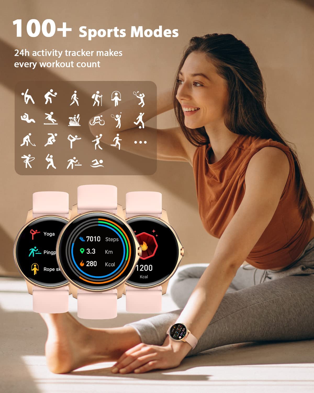 - 【Activity Tracker & 100+ Sports Modes】Enjoy 100+ sports modes (walking, running, cycling, football...) with this fitness tracker. From indoor to outdoor activities, this activity tracker has it all. The fitness watch keeps an accurate record of your activities throughout the day and can track a variety of real-time data such as calories, distance, steps, etc. during your workout so you know your exercise status and make improvements accordingly, it is the perfect choice for fitness enthusiasts