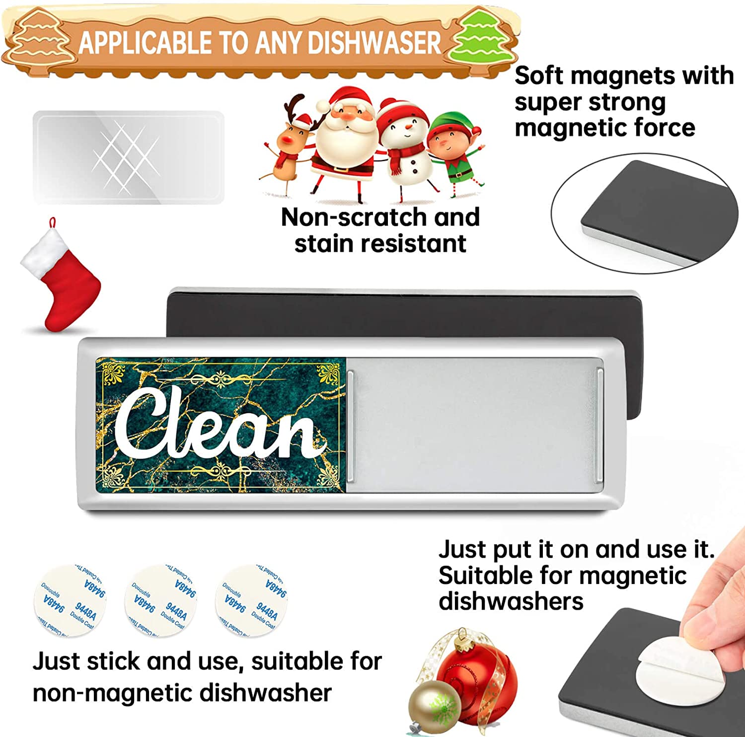 - SUITABLE FOR ANY DISHWASHER: This clean dishwasher sign is made with super strong refrigerator magnets on the back, comes with a strong adhesive and is dual purpose and suitable for any dishwasher. The back of the dishwasher magnet marker is covered with soft silicone to protect your dishwasher or other appliances. You can also use it on your refrigerator, toaster or microwave.
