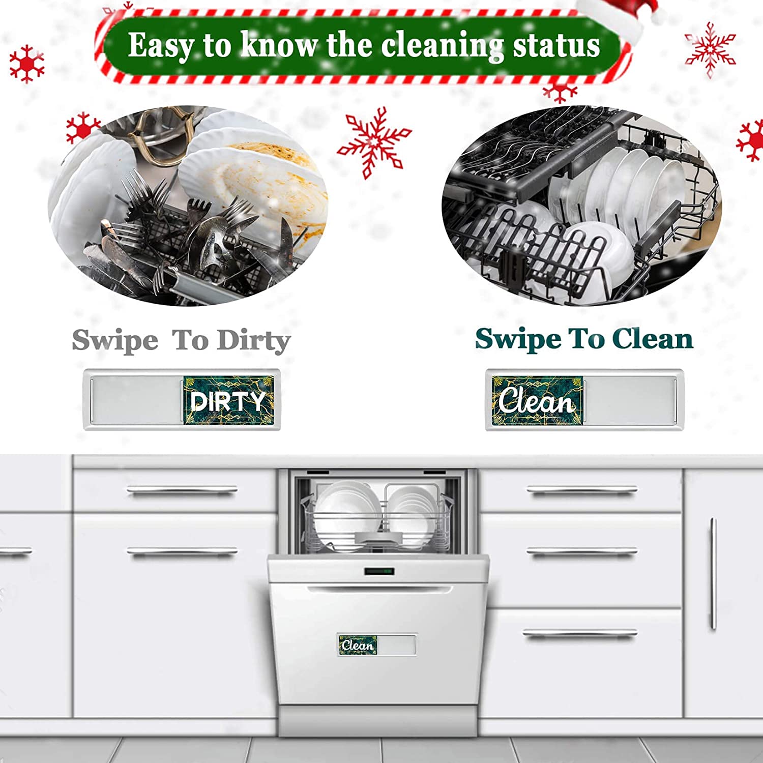 - KITCHEN ESSENTIALS: Our handy dirty clean dishwasher magnet is a great reminder helper. No more worrying about whether the dishes are clean or dirty in the dishwasher! (A great time saver!) . The words are large enough to be easy to read. , to eliminate guesswork and improve kitchen storage and organization.