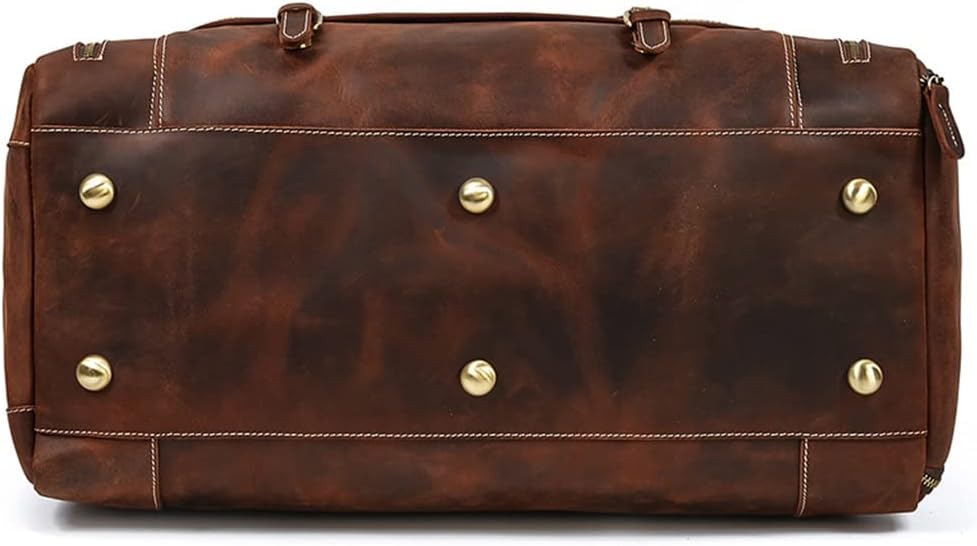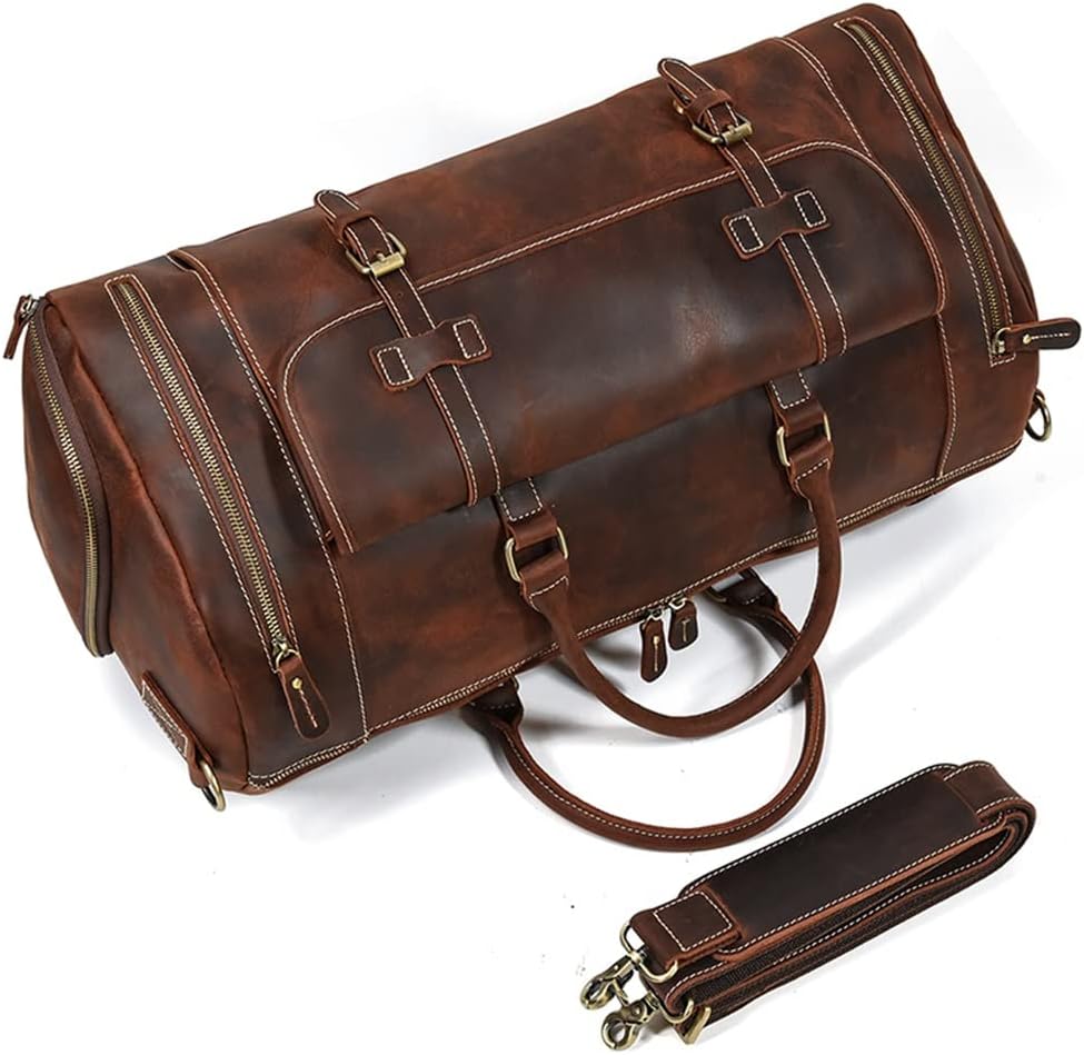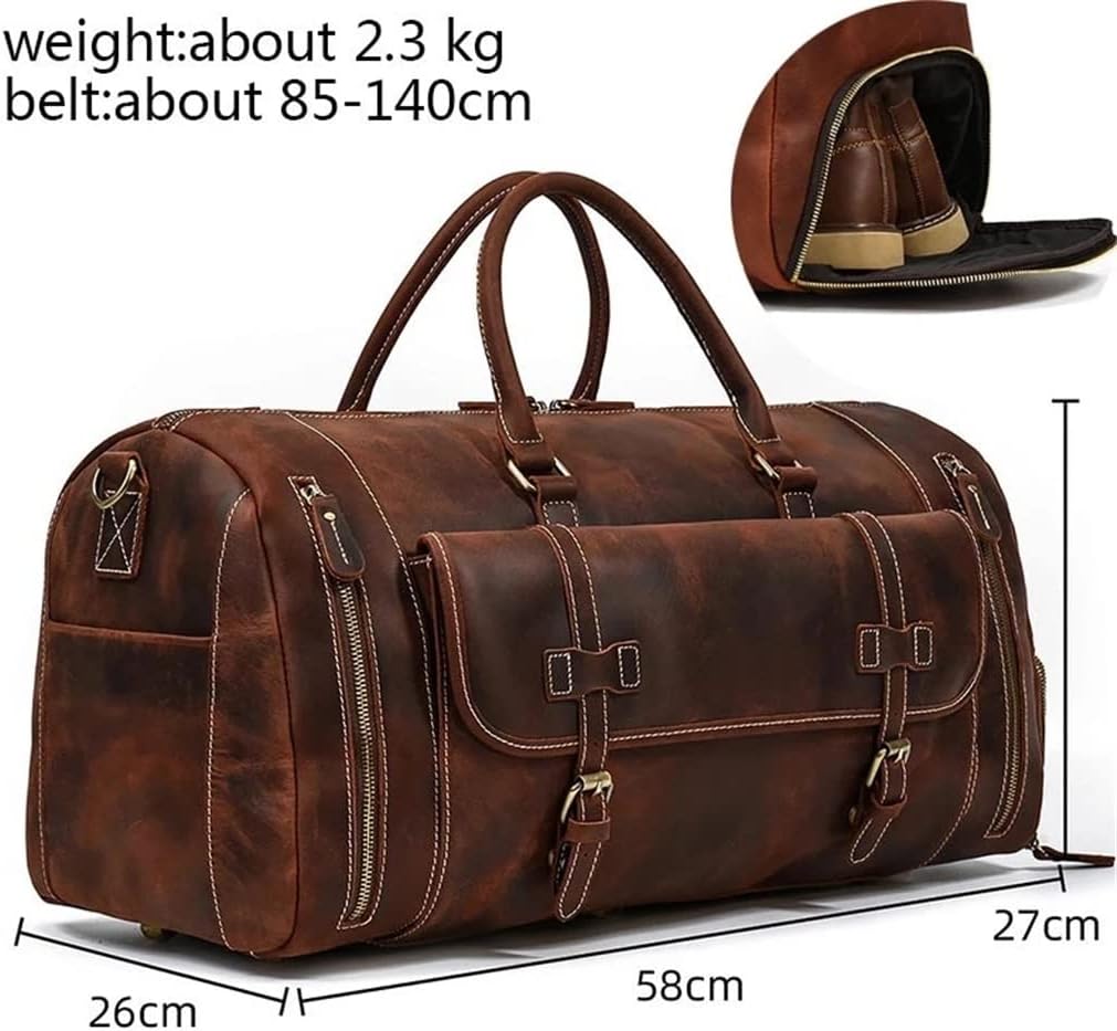 ZLXDP Leather Men's Travel Bag with Shoe Pocket 20 Inch Big Capacity Vintage Leather Weekend Messenger Bag