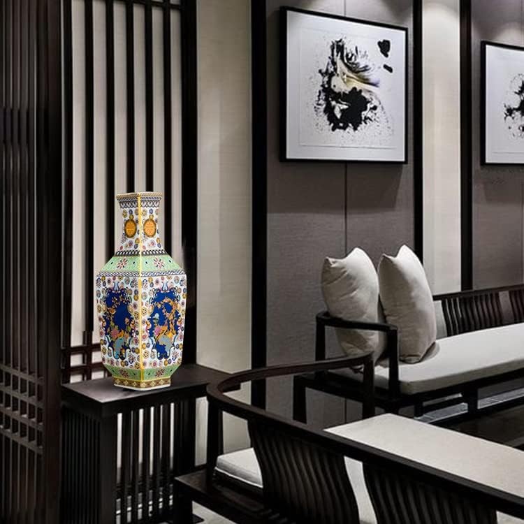 ZSEDP Jingdezhen Ceramic Antique Enamel Flower Vase Flower Arrangement Decoration Chinese Style Living Room