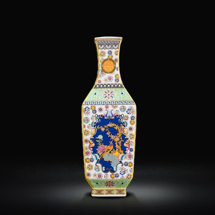 ZSEDP Ceramic Vase Decoration Antique Enamel Powder Color Porcelain Small Mouth Square Vase Gift Classic Home