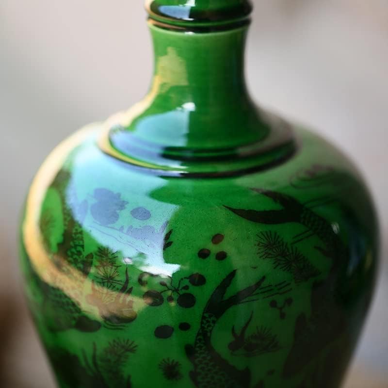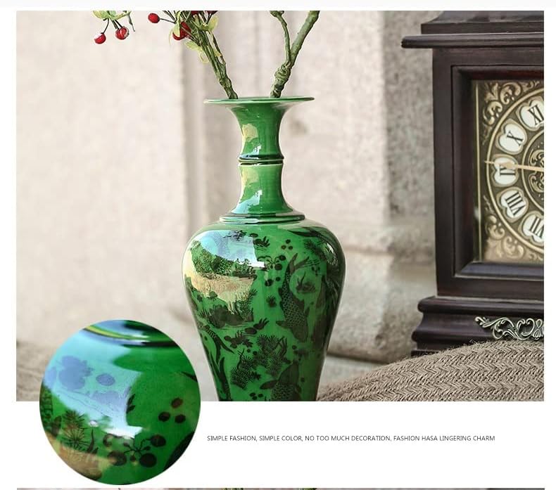 ZSEDP Antique Green Glaze Ceramic Vase Flower Vase Handmade Furnishing Articles Sitting Room Bedroom Decoration