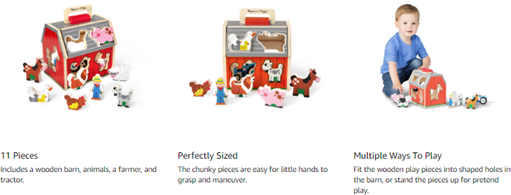 Kids can take farm animal fun wherever they go with the Take-Along Sorting Barn! Fit the 10 wooden play pieces into shaped holes in the sturdy wooden barn, or stand the pieces up for pretend play. Flip up the barn roof for quick and easy access, and use the handle to take playtime anywhere. A perfect gift for toddlers and preschoolers two and older, the chunky pieces (ducks, horse, pig, goat, sheep, chicken, dog, cow, tractor, and farmer) are easy for little hands to grasp and maneuver, and help promote fine motor skills, matching and sorting, and creative play.