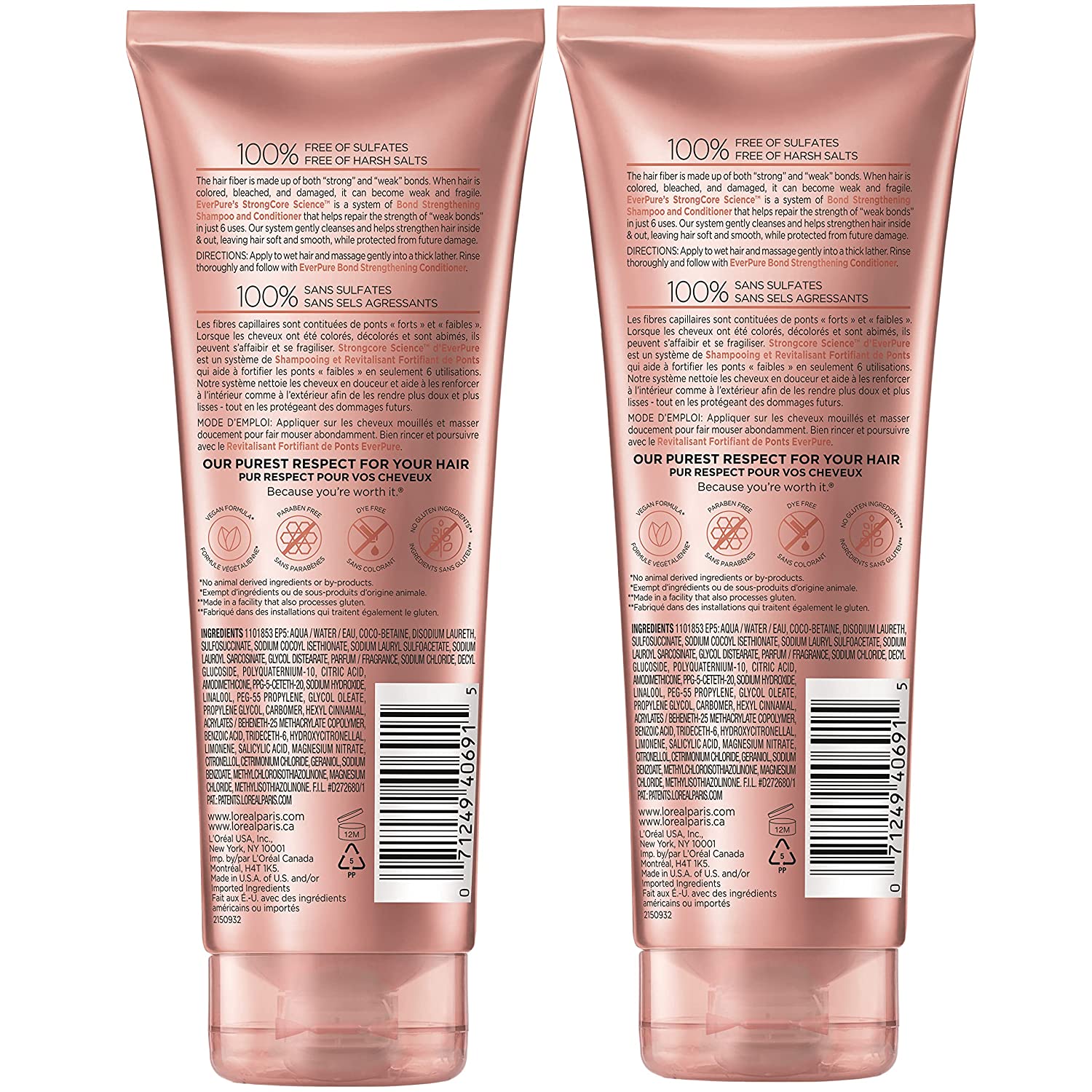 When hair is colored, bleached and damaged it can become weak from within. EverPure Bond Repair system with citric acid penetrates inside the hair cortex to rebuild weak hair bonds. Repairs hair in just one use with system. Scientifically proven to strengthen hair and reduce breakage. For smoother hair than with the number one prestige routine*. *on wet (damaged) hair in instrumental test. Leading prestige routine based on NPD full year data.