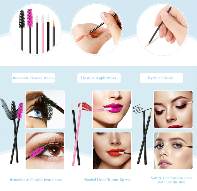 【Disposable】Disposable makeup accessories kit is suitable for personal daily makeup and makeup artist use, clean and hygienic, and can also prevent color mixing. It is also very suitable when trying on lipstick and mascara.