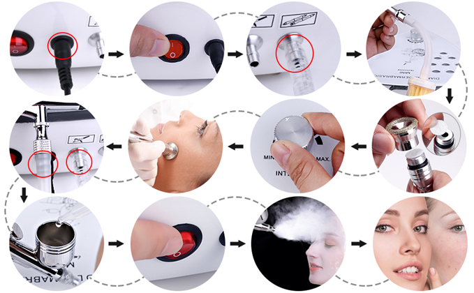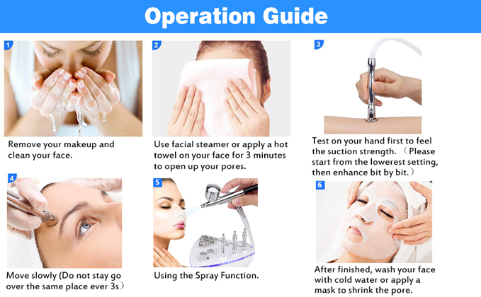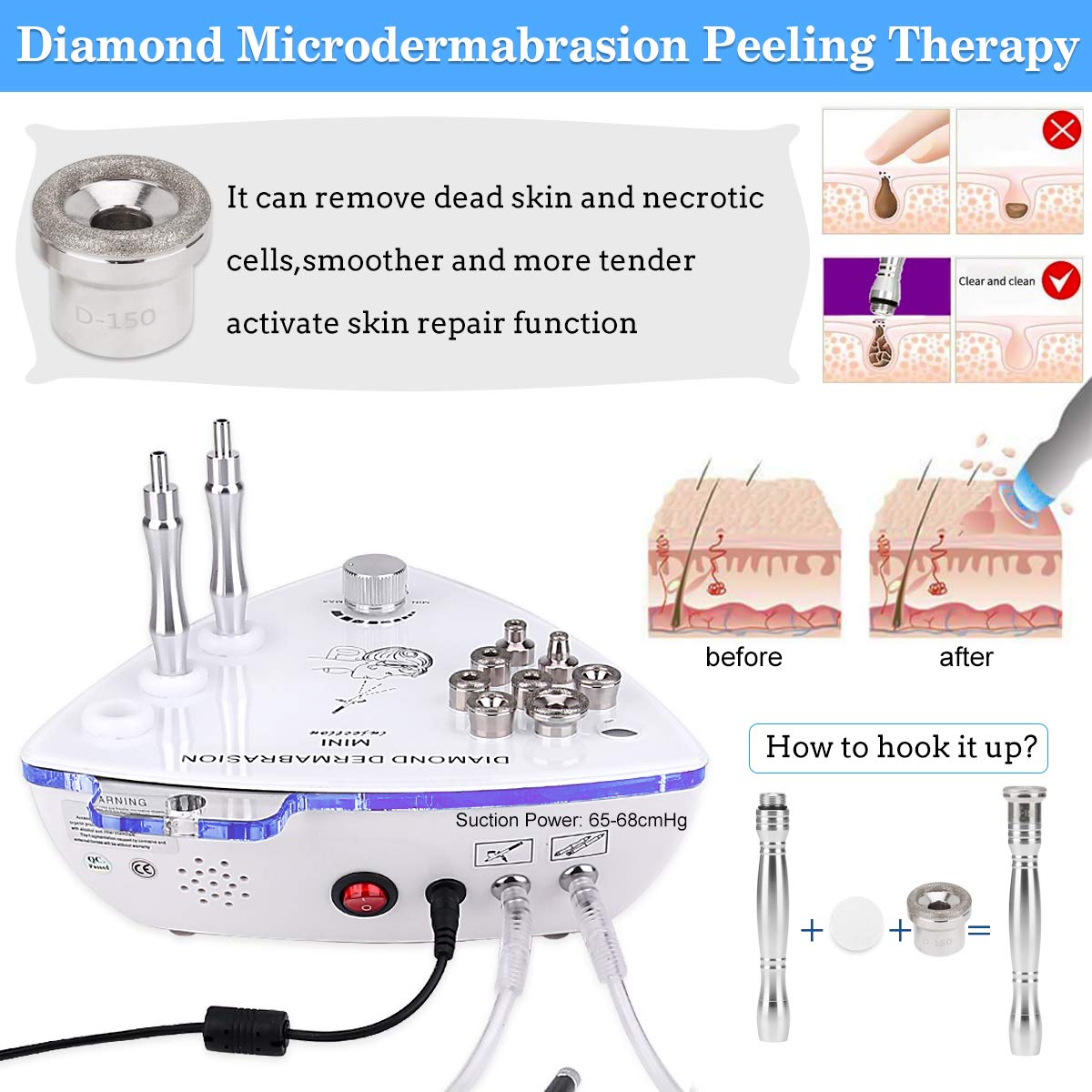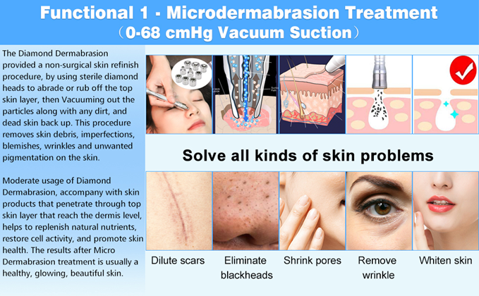 ?【For Facial Skin and Body Care】 Suitable for all skin types, heads of diamonds not only for facial skin, but also for body care. The microdermabrasion machine is equipped with 9 shaped diamond head of different functions,it has adjustable vacuum intensity to adapt to different area treatment