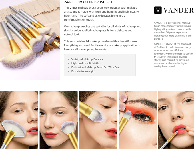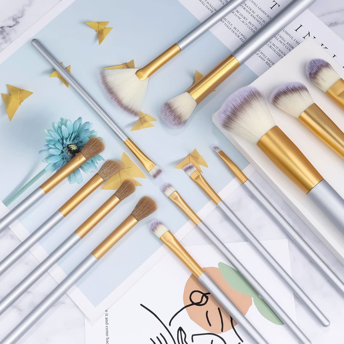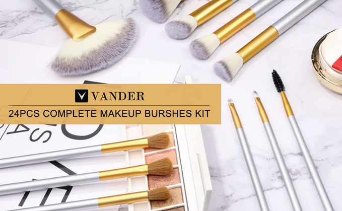 Make up Brushes, VANDER 24pcs Premium Cosmetic Makeup Brush Set for Foundation Blending Blush Concealer Eye Shadow, Cruelty-Free Synthetic Fiber Bristles, Travel Makeup bag Included, Champagne