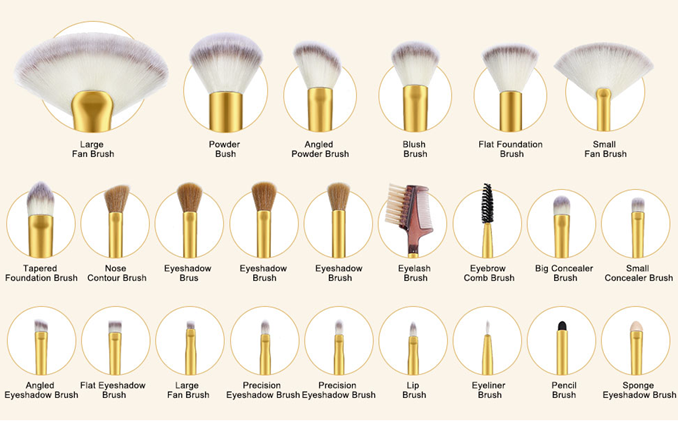 COMPLETE SET OF ESSENTIAL MAKEUP BRUSHES FOR makeup lovers from professional to amateur level. Essential brushes are perfect for liquids, powders, or creams to produce a beautiful face and eye makeup application.