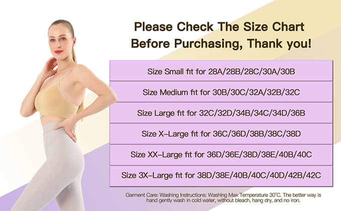 - Notice---Do Not use Fabric Softner.Air Dry or Tumble Dry Low.Please check the size information in the description below before ordering instead of the default amazon size chart.Our active cute sports bras for women have many colors.