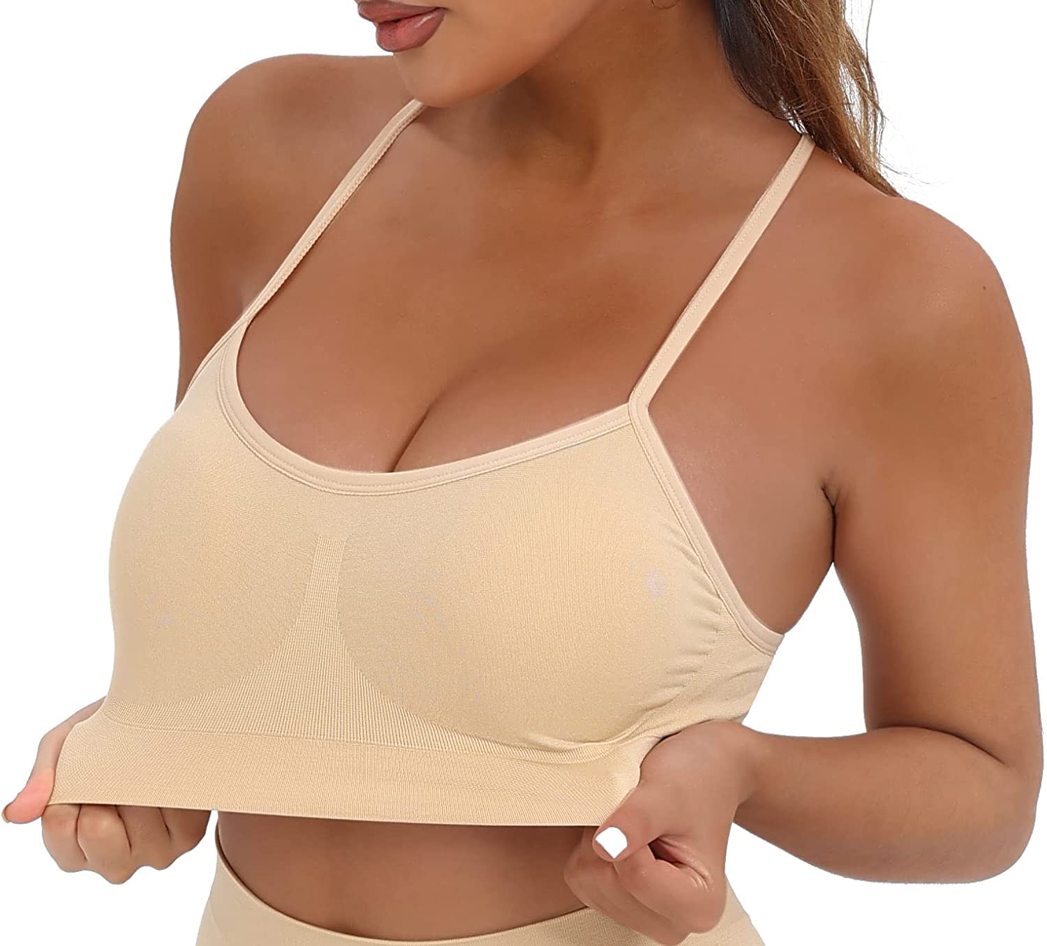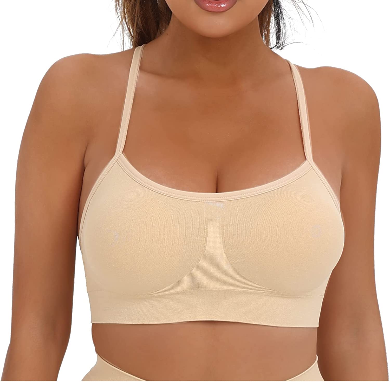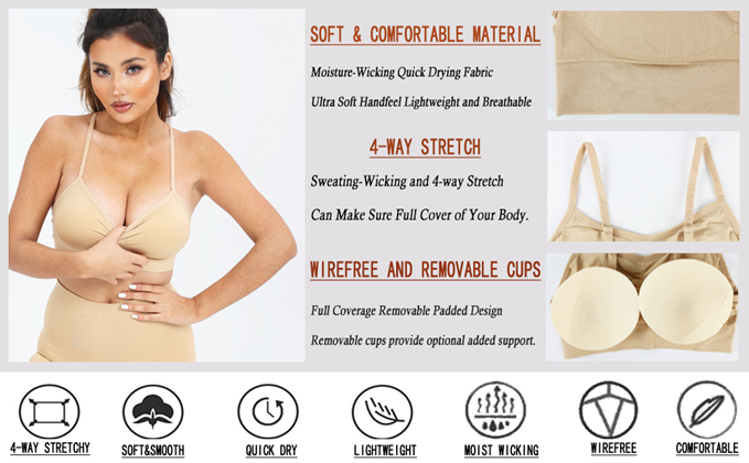 - 4-Way Stretch--Moisture-wicking technology metial which mean that you can enjoy keeping your body cool and dry.These seamless workout bras are made of high elastic upgraded fabric,it is very flattering,soft,sweating-wicking and 4-way stretch,can make sure full cover of your body,feel like your second skin to keep you cool and comfortable.