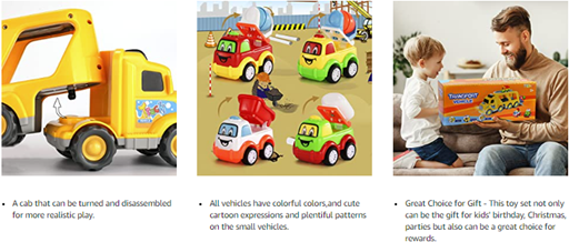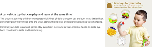 • Premium & Durability & Safety: These truck play vehicles are made of high-quality non-toxic plastic, which complies with American toy standards. The surface is smooth and will not hurt the child's skin. The wheels are finely crafted, there are no corners. Ideal toddler toys for age 3-4.