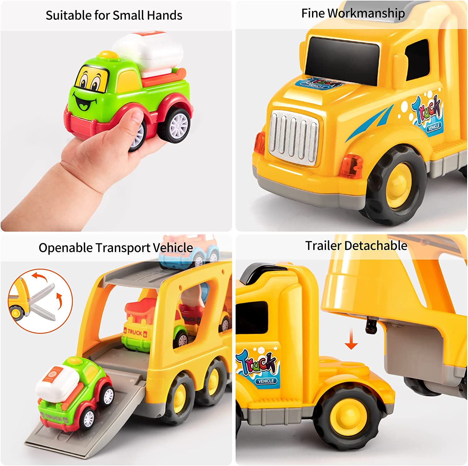 TEMI Construction Truck Toys for 3 4 5 6 Year Old Boys, 5-in-1 Friction Power Toy for Kids 3-5, Carrier Truck Cars for Toddlers 3+, Kids Toys Set for Age 3-9, Christmas for 3+