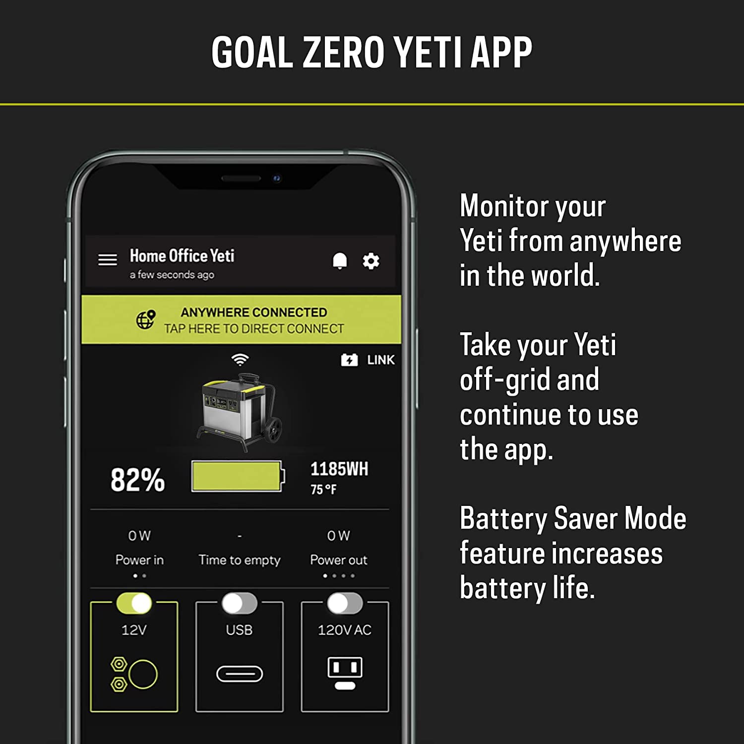 - POWER IN THE PALM OF YOUR HAND: Monitor, control, and optimize your power usage from anywhere with the Yeti App 3.0. Features remote control of power in/out, real-time power consumption notifications, and charging profiles to optimize your battery life.