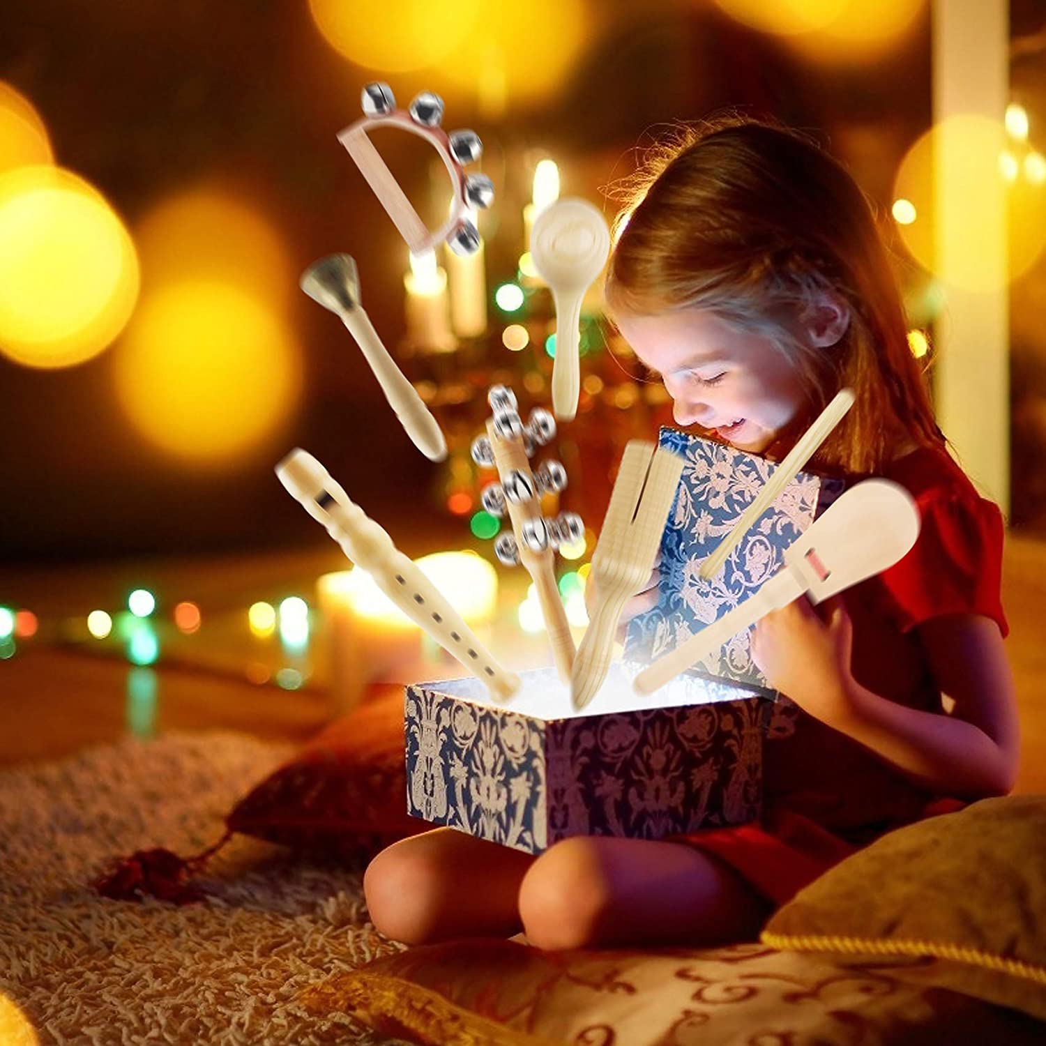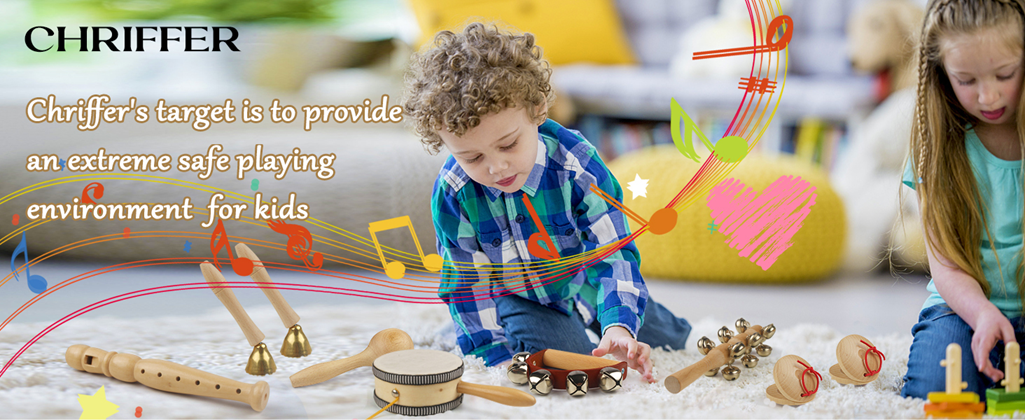 - ♫【100% Natural Wood for Safe Use】This natural wooden musical toy set, including shaking, tapping, beating and blowing instruments, doesn't have any harmful water paint or chemical smell. Chriffer's target is to provide an extreme safe playing environment for kids