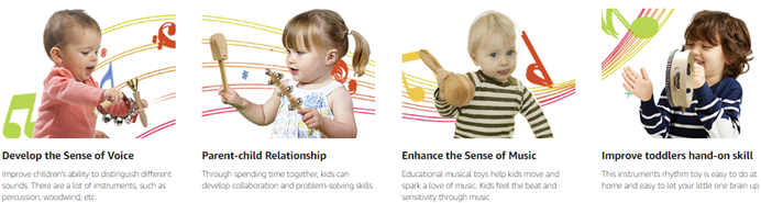 - ♫【Best Montessori Toys for Toddlers】The instruments toy set inspires children’s sense of sight, hearing and touch. It will be helpful to cultivate the kids’ sensitivity of music and the percept of rhythm, improve the creativity and the ability to distinguish instruments, and develop the kids’ interests