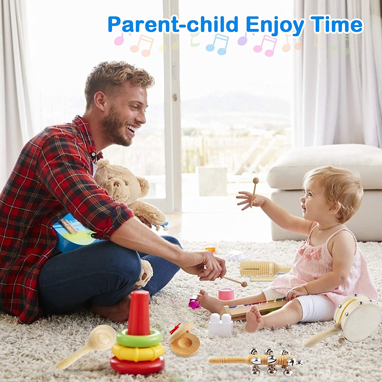 - ♫【Best Early Learning Educational Gift for Kids】The kids can hear different sounds by using different instruments. It builds interaction between parents and children through playing with toddler toys, exercises the baby's brainpower, and enhances the relationship with parents. Chriffer wooden musical instrument set is absolutely the best one of the early learning educational toddler toys you know. Also, it is an ideal gift choice for Christmas or Birthday