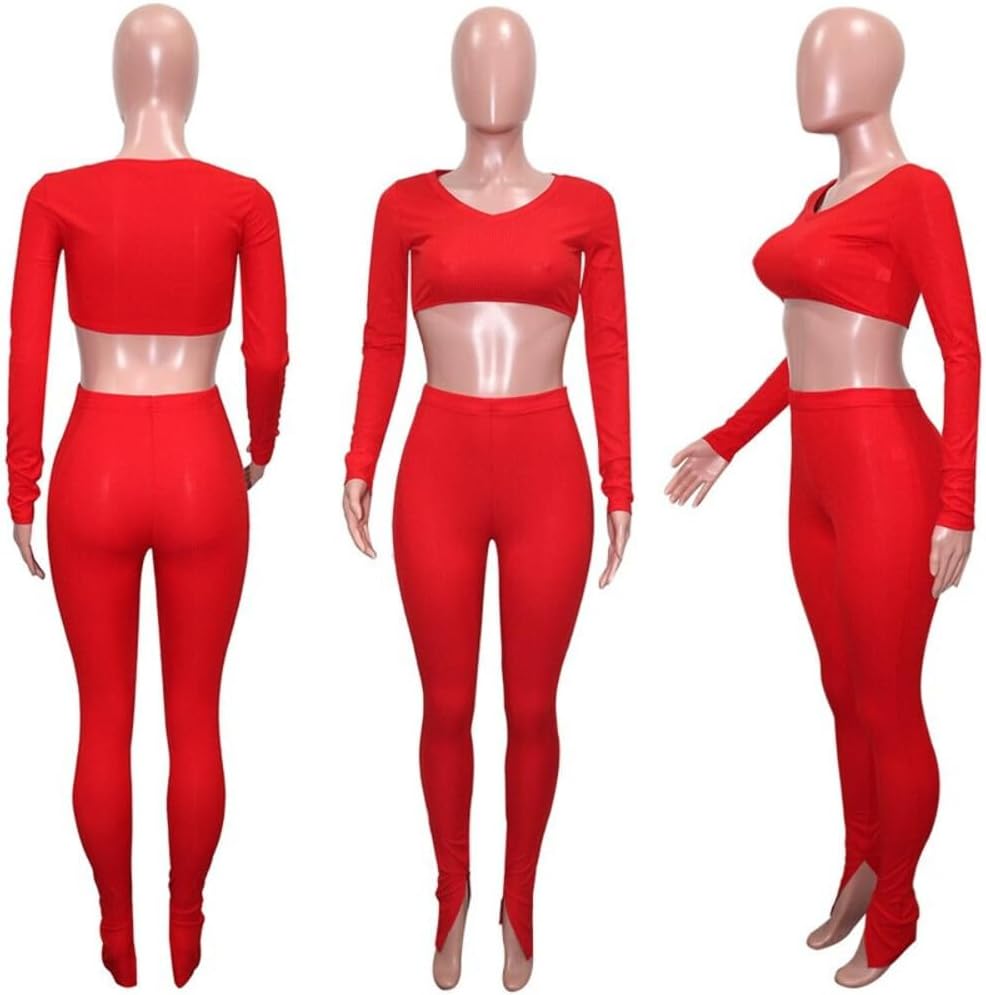 QueenLine 10pcs Wholesale Items for Business In Bulk Clothes Solid Knit Ribbed Two Piece Sets Women Fall Outfits Crop Top + Leggings Tracksuit Red S
