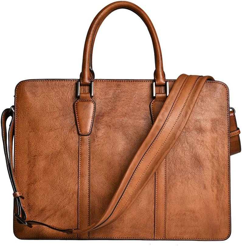 FEER Men's Horizontal Briefcase Business Casual Handbag Shoulder Crossbody 15 Inch Laptop Bag